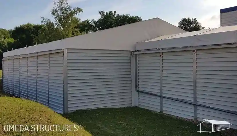 Que ce soit pour prolonger un bâtiment, couvrir une cour ou créer une zone abritée, l’abri monopente Omega Structures est la solution idéale pour protéger efficacement vos espaces professionnels